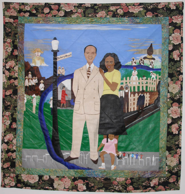 Toni Thomas has been making quilts whose theme is the Chinatown that once was larger than that of New Yorks. Now a sports stadium is being built there and its last vestiges are being torn down. The history and rhythms of this old Chinese American community is depicted with great understanding and affection, and is built on a remarkable historical study of this Chinatown soon to be published by Yoland Skeete of the Sumei Multidisciplinary Arts Center that was located in the heart of this former community. Toni Thomas, of African American and Native American roots, shows the diverse relationships that took place in its old gathering locales, and the Afro-Asian couple who intermarried. Don't miss this exhibition of the art of Kip Fulbeck, Toni Thomas and Dorothy Imagire Albert Chong Troung thi Kim Tuyen Born to a Vietnamese mother and African-American Marine father in Viet Nam in 1972, I have lived in the united Statessince 1975. As an American citizen who is multi-ethnic and cross-culturally adopted, my cultural associations include much of what makes up America's "melting pot." While my association with African-American culture has been quite limited, people always want to place me in the African-American category. Art education and working as an artist have been the constants that define me. I respond to this "mixed skin" show as both an arts professional and an insider, who feels each artist's point of view. The artists in the current art exhibition at the Asian American Arts Centre present blended cultural symbols created for multicultural understanding, making us pause to consider where mixed people come from as well as to ask where they might be taking us. Mixed Skin people pioneer new parameters for ethnic categories as well as for DNA. Kip Fulbeck was born in 1965 to a Chinese mother and an English/Irish father. His lifetime of work has been dedicated both to exploring the identity of mixed race individuals and to reconstructing public perception of same by giving "Hapas" a public platform.The DNA of skin and the visible traces of multiracial tones found in Kip Fulbeck's Hapa photographs present a range of multiracial or mixed race persons created by contemporaryAsian culture and ethnic mixing. Fascinating revelations are offered by mixed skin people in their own words they tell us "what" they are. This is your opportunity to look deeply into the new Asian (American) paradigm of ethnic ownership. In the "real" world, perfect strangers feel entitled to ask mixed kids: What are you? Talking to a stranger about personal history or heredity is unwelcome and awkward for mixed skin people of all ages. Dorothy Imagire's artwork explores cultural connections and disconnections of her own mixed Japanese-American/Iranian-American idenity. Through research and the art she makes exploring Asian-American issues, Imagire penetrates the symbolism related to the Japanese American culture she identifies with, and by means of her art, openly shares her personal identity search. Imagire's interviews with mixed skin (third generation) Japanese-Americans--a way to answer identity questions for herself-- produced "Bi-cultural Kimono." The kimono has been held in high esteem in Japanese culture as a symbol of beauty and ethnic pride. Made of traditional textiles and found fabric, each of Imagire's personally inspired garments is a product of her extensive interviews of these third generation mixed people and fabric construction techniques she learned from her Japanese tailor grandfather and Japanese seamstress grandmother. Dorothy Imagires Kimonos present a modern Japanese person, self-liberated, cutting into a traditional symbol of ancient Japan. Imagires work is both a fashion statement and a personal revelation for multicultural people. Next, Imagire applies this strategy to blankets for Quapa (socialogial term for quarter ethnic mixtures), baby blankets for the next generation--children of Imagire's modern Kimonos. Toni Thomas rejects the concept of "Mixed Race," and classifies herself and others based on ethnicity. Thomas has two parents of African-American decent and calls herself African-American (with a bit of Native-American). In her fabric-backed paintings, she relates the historical perspective of the Chinese-American to that of the African-American. Thomas regards the Chinese immigrants who worked the railroad as the equivalent of the African-American field hands who planted and picked cotton. Chinese and African-American written expressions on her paintings make reference to a shared history of manual labor building the American nation. Thomas illustrates the shared migration from the field to the city by Chinese and African-American people by showing them side by side in American garments blended with cultural dress in urban environments. The viewer is made to understand that new levels of work and generational advancement in social status is a shared journey. Today in Newark's multi-cultural Chinatown, Chinese-Americans and African-American's live side by side, with mixed race couples, mixed skin kids dissolving the lines between Chinese-American heritage and Black American culture, and presenting a slice of culture that is distinctly American. Accordingly, Thomas has created a painting that illustrates a mixed culture environment rooted in African and Chinese history in America. Meanwhile, as we sit in front of popular culture's big screen, mixed skin achievers like Tiger Woods redefine American racial self-identification standards and perceptions. Woods challenged America's media that categorized him as African-American and sometimes asked him what he was by making up a word for his mixed skin status, something long and hard to pronounce that included all of the cultures in his diverse family. Mixed skin Woods was telling people all over the world that he is beyond previous categories for cultural or racial classification. Today, high-profile cross-cultural marriages like that of Seal an